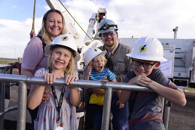 Staff and family participated in 13 interactive booths to learn about many aspects of Sunflower’s wholesale generation and transmission services, such as hotsticking and transmission voltages, Sunflower’s vehicle fleet and heavy equipment, solar energy, purchasing, laboratory work, and CIP responsibilities. The sky view from the bucket manned by the transmission crew was a favorite of the brave-hearted, and all ages enjoyed John Vsetecka’s demonstration about how energy works.