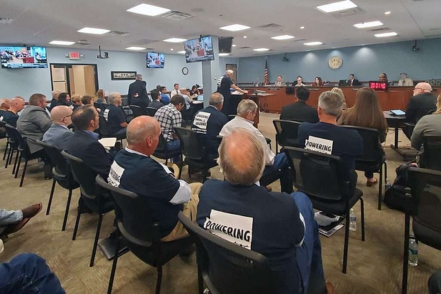 On Oct. 12, dozens of supporters arrived at the ACC meeting in Phoenix, all wearing T-shirts supporting the project and Arizona electric co-ops. They packed the hearing room and spilled into an overflow room, and more than 20 got up to speak on AEPCO’s behalf.